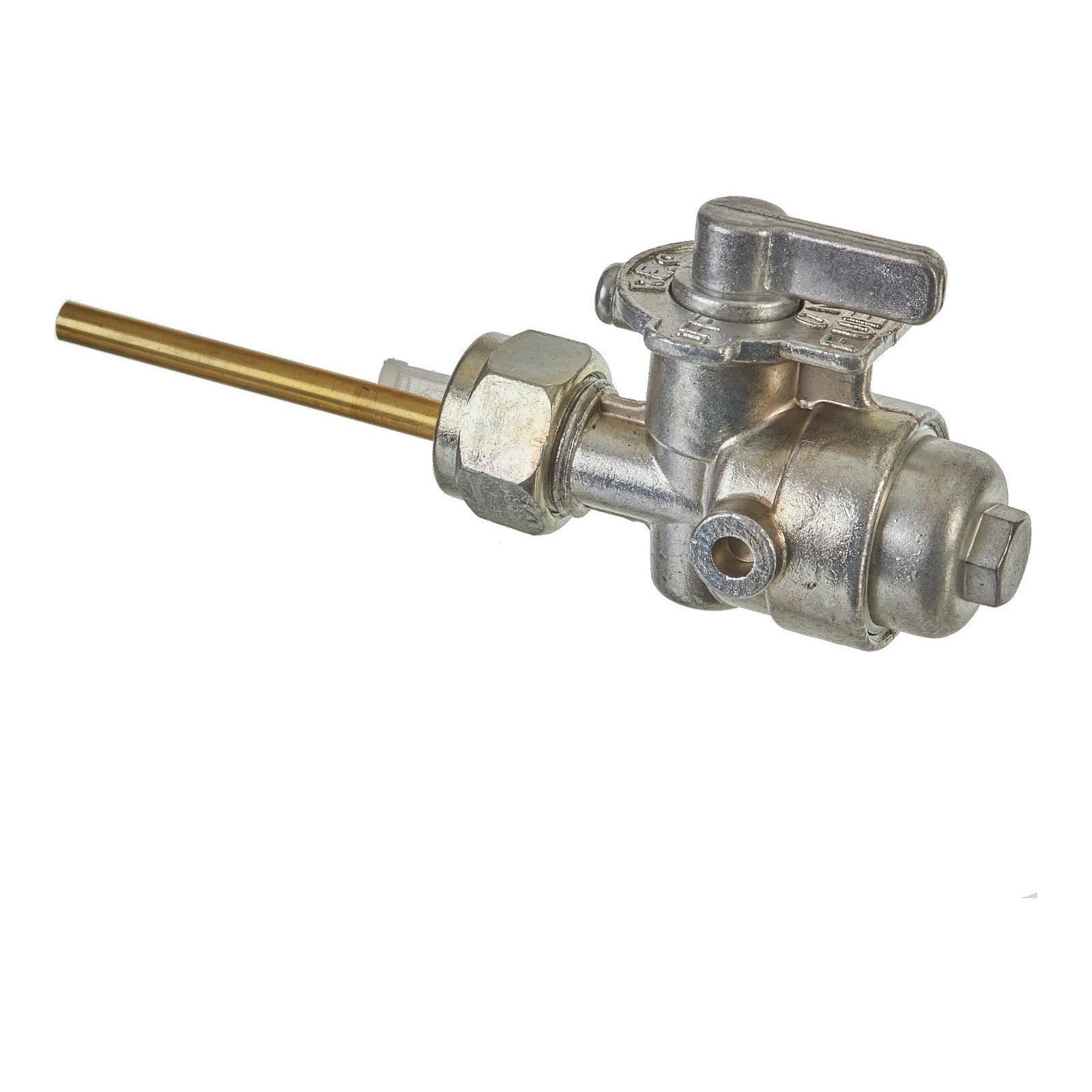 The Whites AG100 Fuel Tap is designed as a direct bolt on OEM replacement petcock for your AG100. The fuel tap includes all seals for a quick and easy installation and is built to meet or exceed OEM specifications, with an OEM design for the perfect fit. The tap has an on, off and reserve positioning and is constructed with a 5mm right hand outlet for use with 5mm ID fuel hose.